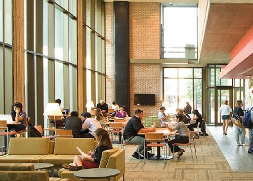 Có rất nhiều nhà hàng, tiệm cafe xung quanh campus