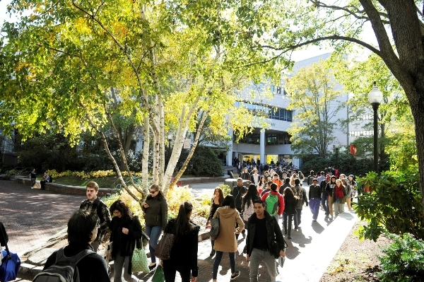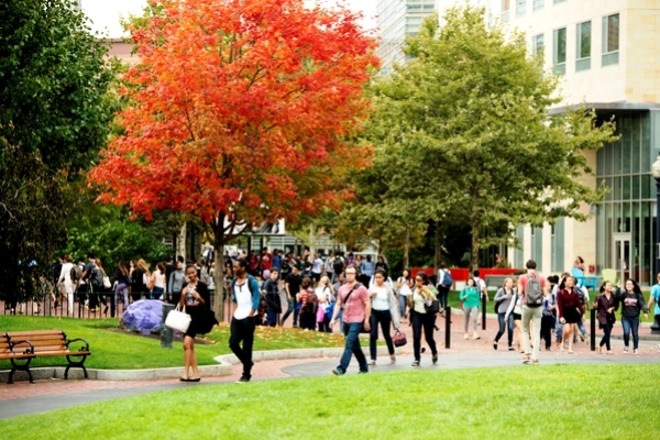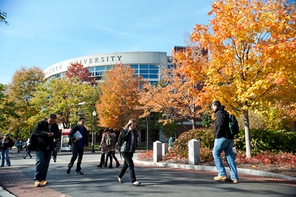 10/26/15 – BOSTON, MA. – Students walk across campus on a late Fall day at Northeastern University on Oct. 26, 2015. Staff Photo: Matthew Modoono/Northeastern University