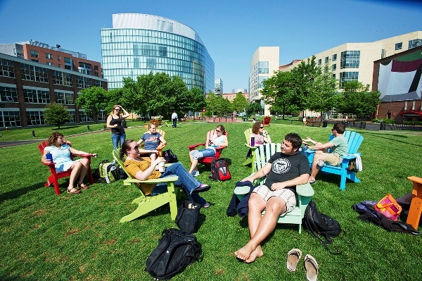 June 15, 2011 – Stock photos of Northeastern University campus in Summer, including campus tours, frisbees and adirondack chairs. PHOTO: Mary Knox Merrill / Northeastern University