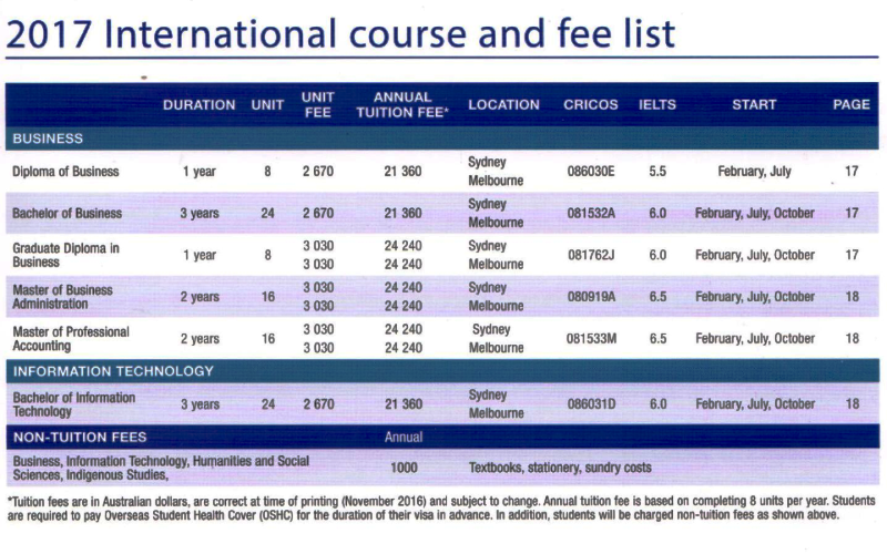 ► Học phí cạnh tranh, thấp hơn nhiều so với các trường Đại học Công lập khác của Australia (từ AUD21,360 đến AUD24,240). (cụ thể xem tại phần II)