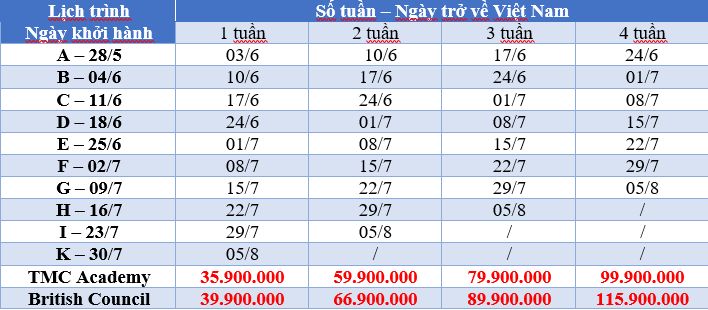 Nhiều lịch trình phong phú diễn ra trong 1,2,3 và 4 tuần. Chuyến đi được khởi hành Chủ Nhật hàng tuần từ 28/05/2023 đến hết tháng 07/2023