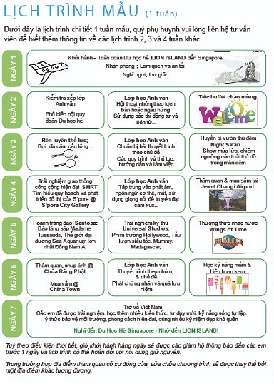 - Trại hè tại Singapore LION ISLAND có lịch sử hơn 18 năm, đã nhận được sự hoan nghênh và hưởng ứng nhiệt liệt của phụ huynh cùng các em học sinh ở nhiều lứa tuổi khác nhau.